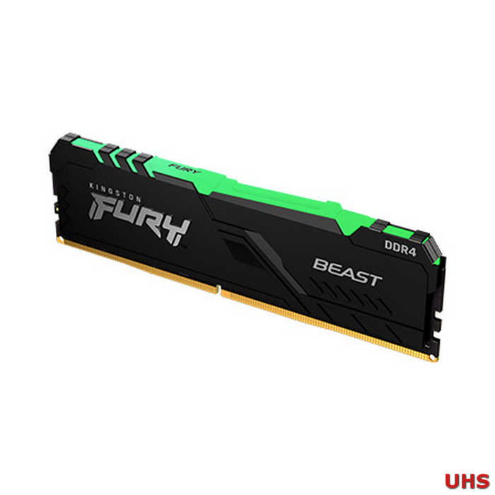 Kingston FURY? Beast DDR4 RGB1 delivers a boost of performance and style with speeds of up to 3733MT/s*, aggressive styling and RGB lighting that runs the length of the module for smooth and stunning effects. This dazzling, cost-effective upgrade is available in 2666MT/s?3733MT/s speeds, CL15?19 latencies, single-module capacities of 8GB?32GB and kit capacities of 16GB?128GB. It features Plug N Play automatic overclocking at 2666MT/s2 and is both Intel? XMP-ready and Ready for AMD Ryzen?. Customise the RGB lighting effects by using Kingston FURY CTRL software and its patented Infrared Sync Technology. FURY Beast DDR4 RGB stays cool with its stylish, low-profile heat spreader. 100% tested at speed and backed by a lifetime warranty, it?s an easy, worry-free upgrade for your Intel or AMD-based system.